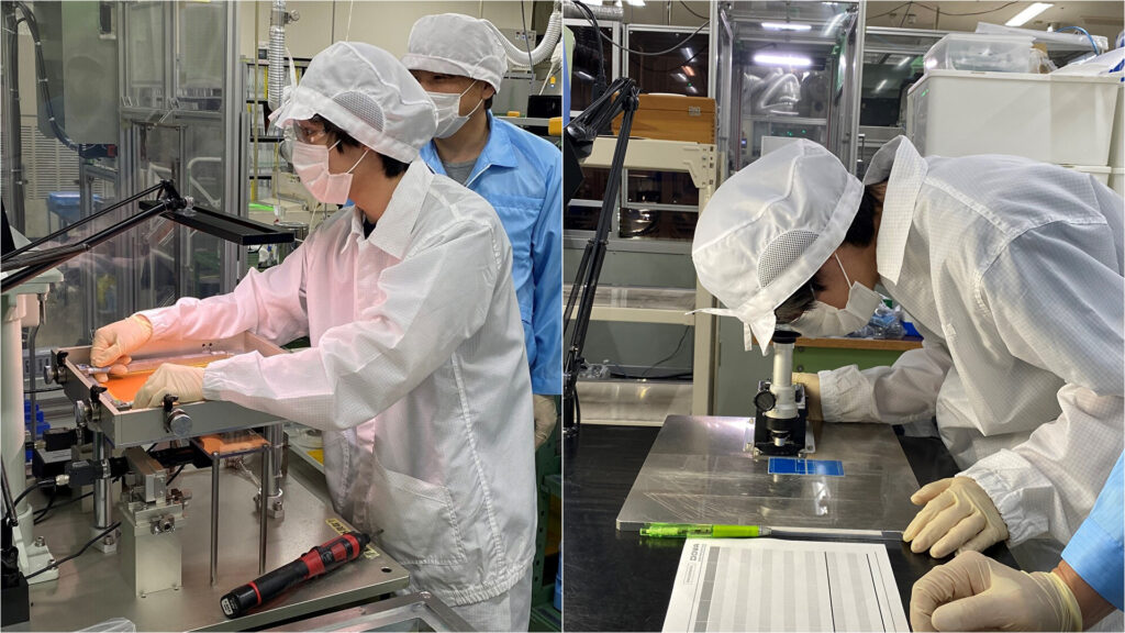 半導体パーツに必要な回路を形成するインク印刷工程を、手作業で体験いただきました。