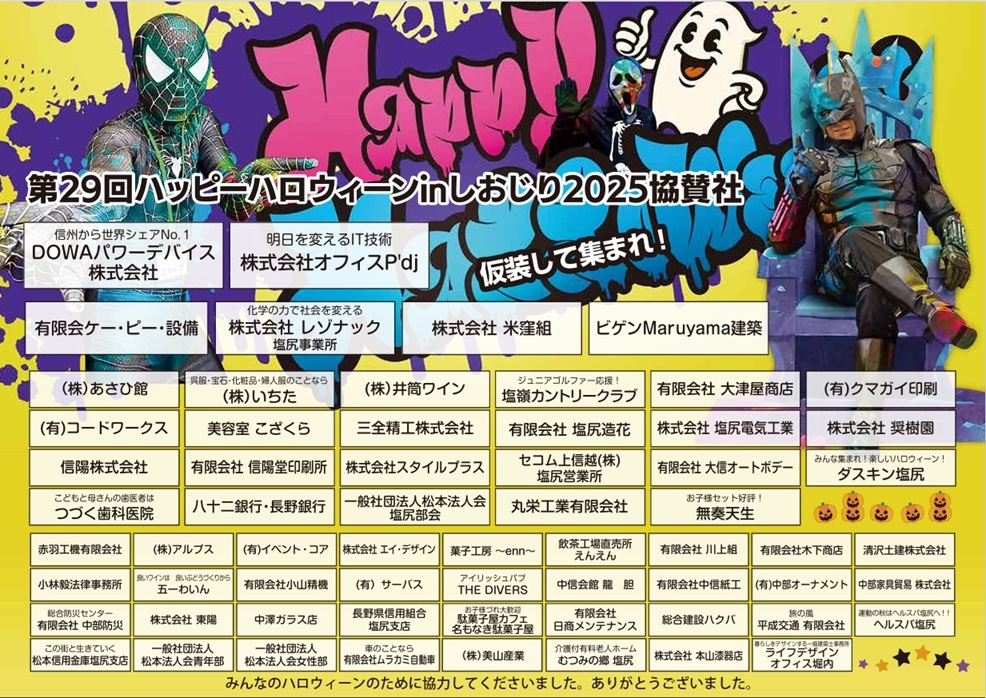塩尻市秋の一大イベント「ハッピーハロウィーンinしおじり」に協賛しました!