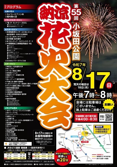 2025年8月17日に開催された「第55回 小坂田公園納涼花火大会」に、当社は協賛企業として参加しました。