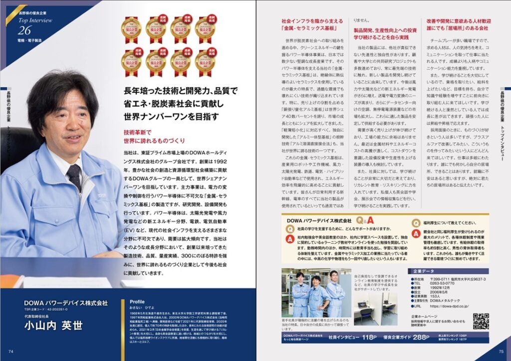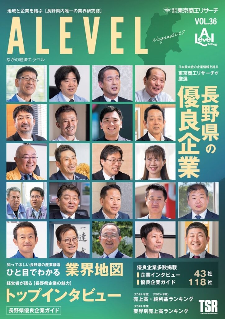 このたび、当社は東京商工リサーチ(TSR)様が厳選する「長野県の優良企業」に8年連続で選定され、地域企業ガイド『ALEVEL(エラベル)長野県版2027』に掲載されました。